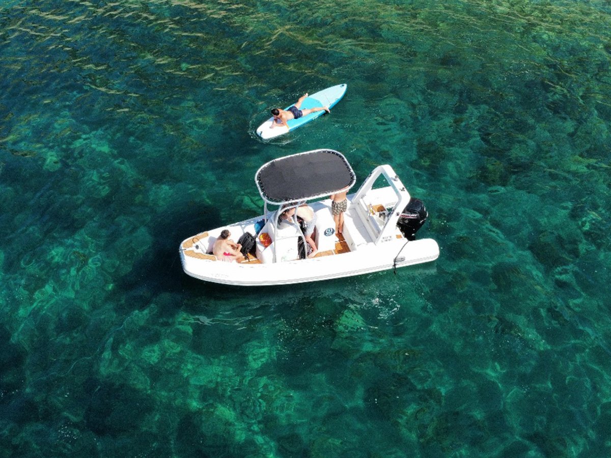 Semirrígida potente y espaciosa con motor Mercury 100 CV. Capacidad para 9 personas, ideal para grupos o rutas activas. Dispone de música, solárium y toldo.